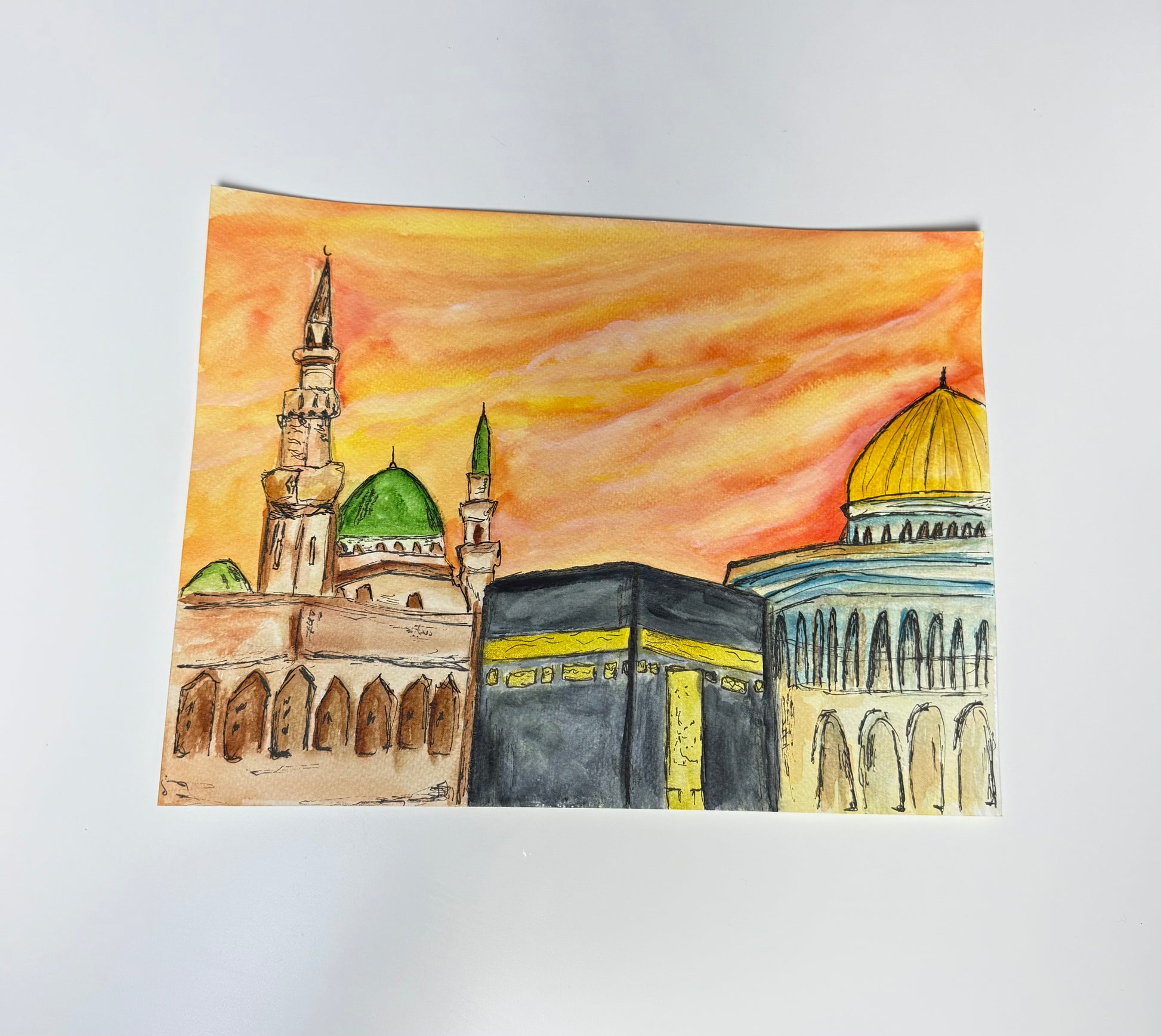 Introducing an Expression of Faith: Original Painting - "3 Mosques" 24cm x 32cm.